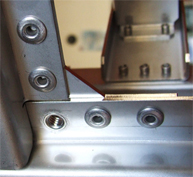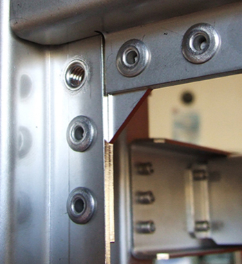 All sheet metal components are laser cut with aircraft/military quality tolerances in the ten-thousandths of an inch range as depicted here with the skeleton of an air-cooled chiller. Note the PEM nut inserts and numerous stainless steel rivets that result in a very rigid, strong and exacting structure.