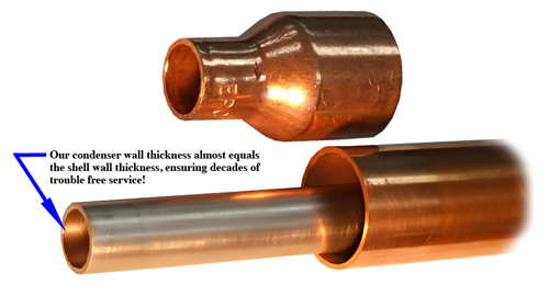 The heart of every marine air conditioner is the condenser—the heat sink to the ocean and the only component the corrosive sea water touches is the inside of the inside tube. Failure of this tube is catastrophic for the entire system. Even extremely corrosive places like the very high salinity of the Red Sea are no problem for Flagship Marine condensers because we use an unusually thick walled 90/10 CuNi (copper-nickel) tube with particular annealment, hardness, and other characteristics.