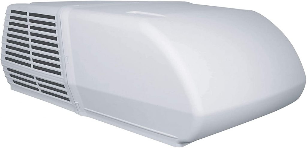 Inside the camper all you see is an attractive ceiling mounted control & air distribution assebly that is only 3″ high x 22.5″ wide x 26″ long.