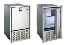 The Isotherm White Ice Maker is a robust ice maker built for the marine environment. With a white, proud-mount door, this model of the White Ice Maker allows installation in cabinets with shallower depth. Good looks and rugged dependability distinguish this ice maker, which features a marinized design for long life in the marine environment. White ice technology produces up to 22lbs. of crescent-shaped white ice per day and stores up to 12lb. of ice in the included bin. Installation is simplified by the front intake and exhaust. Stainless steel door.