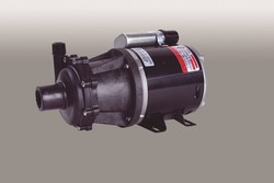 March Pump’s industrial TE-5C-MD-AC is an American seal-less centrifugal magnetic drive pump ideal for applications such as chemical recirculation, chemical transfer, and scrubber systems. It is capable of generating a maximum flow of 30 gallons per minute at 11 feet, and its maximum head is 41 Feet (or around 18PSI). The standard wet end (the materials that come into contact with the solution) is composed of Polypropylene, Viton, Ryton/Teflon/Carbon, and Ceramic. The inlet connection is 1-inch female pipe thread, and the outlet is 3/4 inch male pipe thread. The standard motor is a 1 Phase 115/230V 0.2 Horsepower fan cooled motor, which can be run on either 50 or 60 hertz (there are performance differences between the hertz options). The maximum internal pressure the pump can tolerate is 50PSI, and the maximum liquid temperature is 190 Fahrenheit or 87 Celsius. The March TE-5.5C-MD-AC centrifugal magnetic drive pump is capable of handling mildly or highly corrosive chemicals, acids, and solvents. This pump can be used as a replacement for a Dometic Cruisair pump as well as Mermaid, King-Aire and Aqua-Air. To determine if the March TE-5.5C-MD-AC is suitable for your application, please contact us toll-free 800-316-6426.