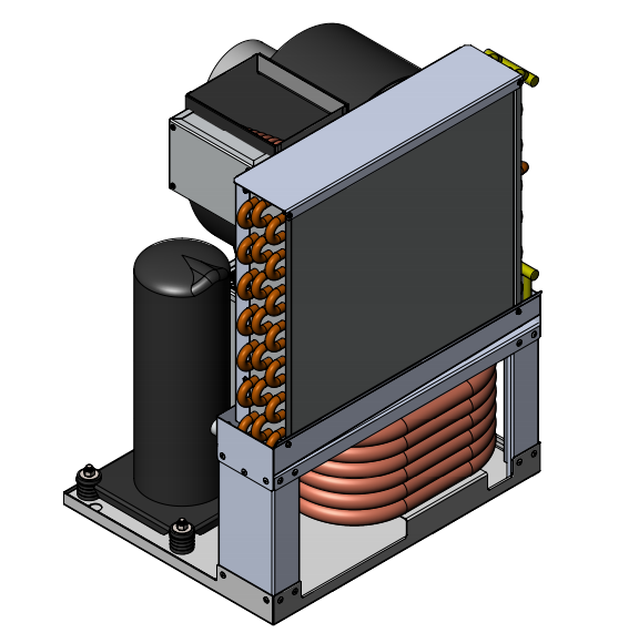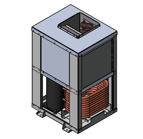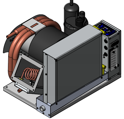 All sheet metal components are laser cut with aircraft/military quality tolerances in the ten-thousandths of an inch range as depicted here with the skeleton of an air-cooled chiller. Note the PEM nut inserts and numerous stainless steel rivets that result in a very rigid, strong and exacting structure.