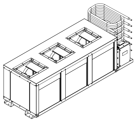 This 8 ton (96,000 BTU) unit pumps out more than 5,000 CFM of air conditioned air with two blowers, four evaporators and a nine ton condenser assembly, which results in a low compressor head pressure and amp draw.