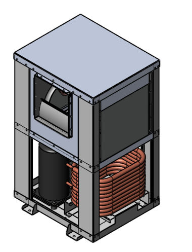 Small footprint (25 by 17 by 17 in.) and is available in top or side discharge, 240 volts, 50 or 60 hertz.