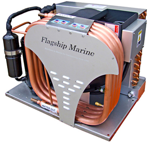 All Flagship Marine equipment incorporates expansion valves which adjust the modulation of the refrigerant to match the conditions of sea water, humidity and ambient temperature. This maximizes performance by preventing excessive or inadequate refrigerant head pressures, resulting in more cooling and extended component life!