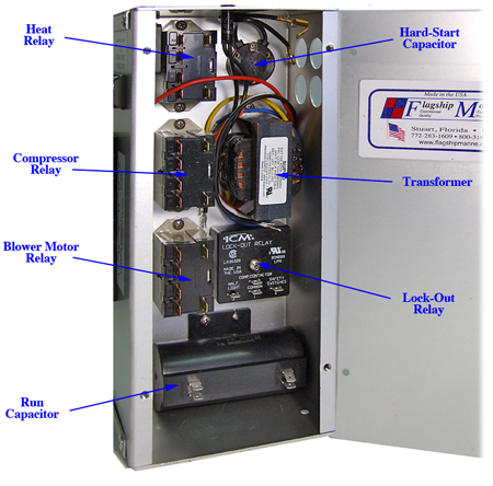 As you can see below, the Flagship Marine electric control box has the highest quality over-the-counter components, and it is extremely easy to diagnose and repair a problem.